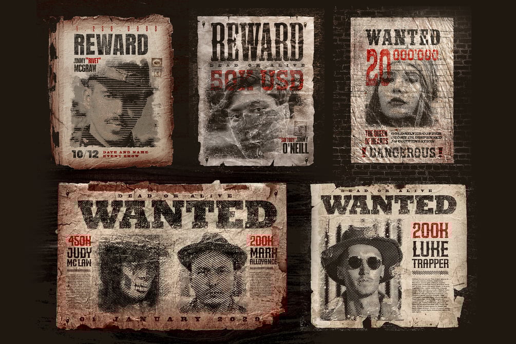 Old Wild West Vintage Wanted Posters - Photoshop PSD Templates